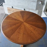 Als Beispiel ein Brandfleck auf einem Tisch - manchmal genügt ein Nachschleifen und eine Neubehandlung der Oberfläche, manchmal wie auf dem Bild, wird die alte Furnierschicht komplett abgeschliffen und wieder neu aufgeleimt, farblich angeglichen und lackiert.